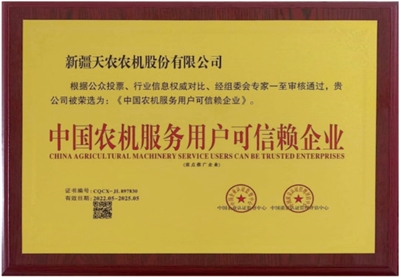 中國農機服務用戶可信賴企業