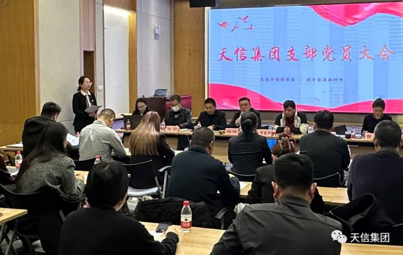 2023年12月13日上午,天信集團黨員大會在集團27樓會議室隆重召開,集團農機支部與分公司支部的共產黨員30余人參加了本次會議,烏魯木齊市天山區解放南路片區工作委員會副書記陳琛、龍泉社區書記李亞萍一行三人受邀參加指導工作。